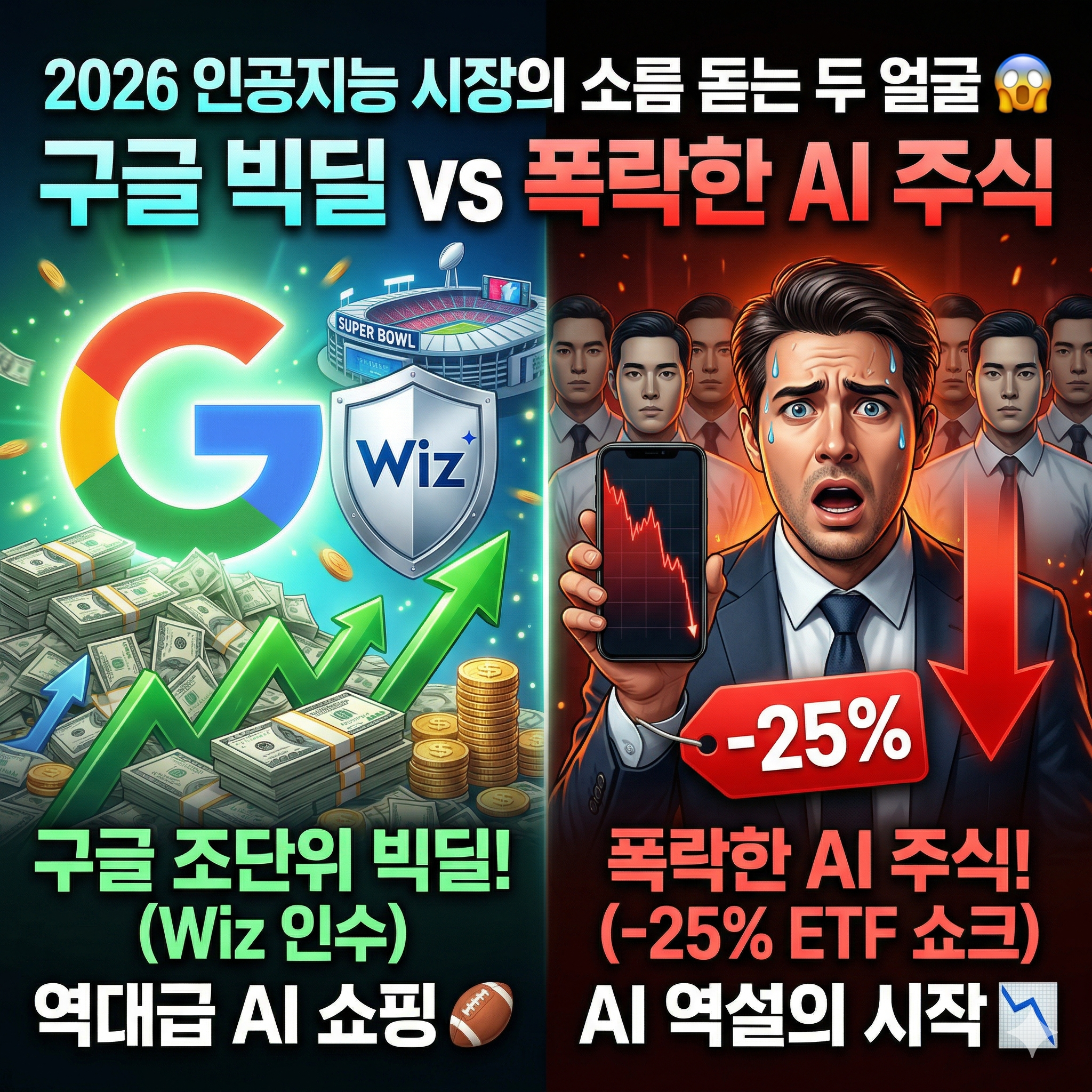 오늘은 구글의 역대급 인수합병 소식부터, 잘 나갈 줄 알았던 AI 소프트웨어 주식들의 폭락 사태, 그리고 우리 뇌를 지배(?)하기 시작한 AI의 부작용까지! 대중매체가 잘 알려주지 않는 '2026년 AI 시장의 진짜 현실 3가지'를 스토리텔링으로 재미있게 풀어볼게요. 커피 한 잔 딱 준비하시고, 따라오세요! ☕️✨