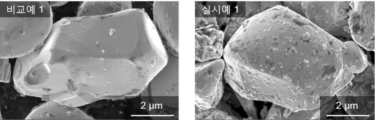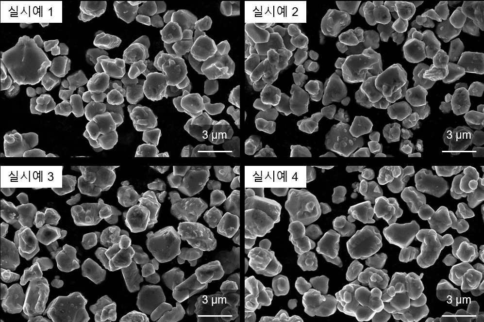 발명의 일 구현예에 따른 실시예 및 비교예에서 얻은 양극활물질의 SEM 사진