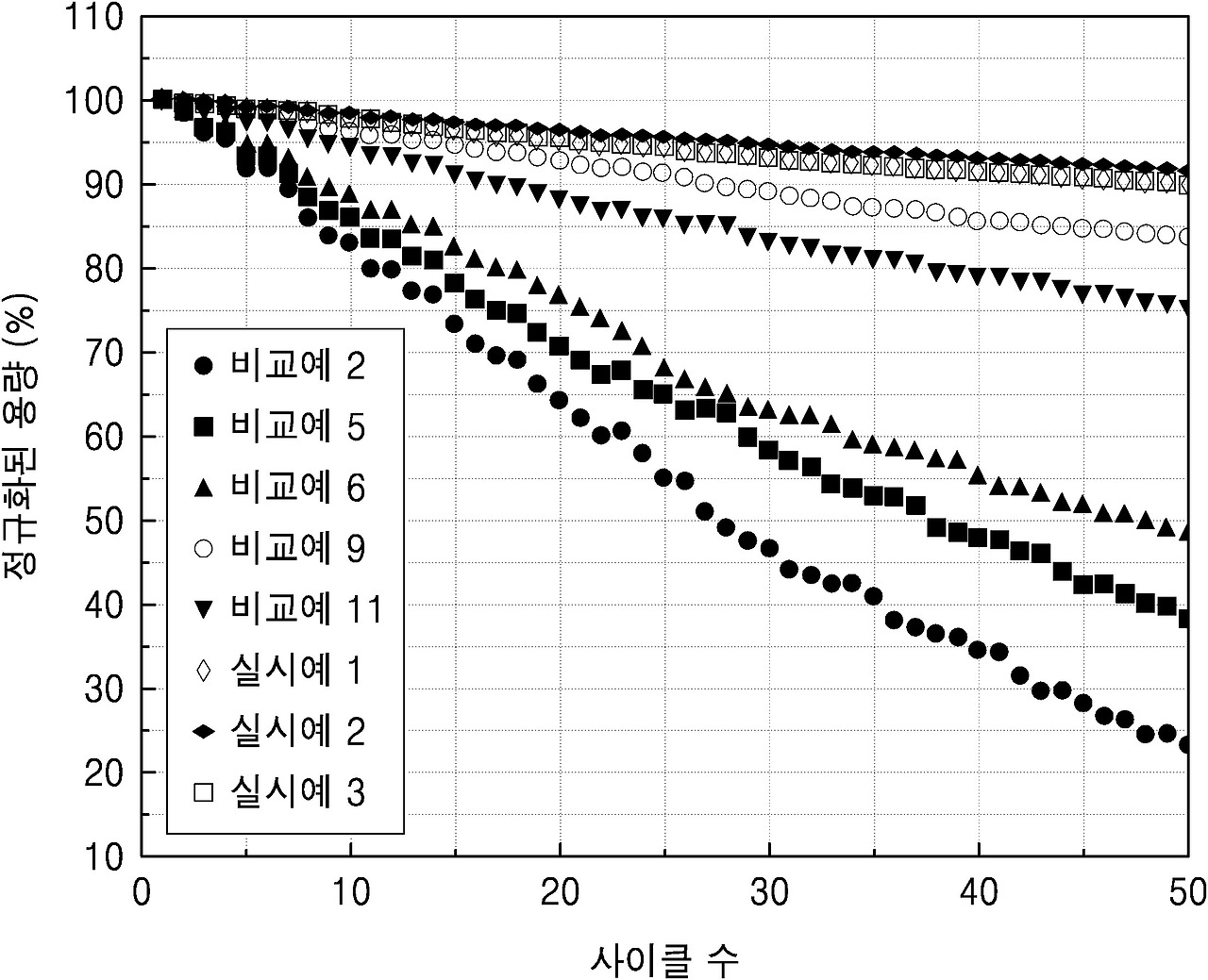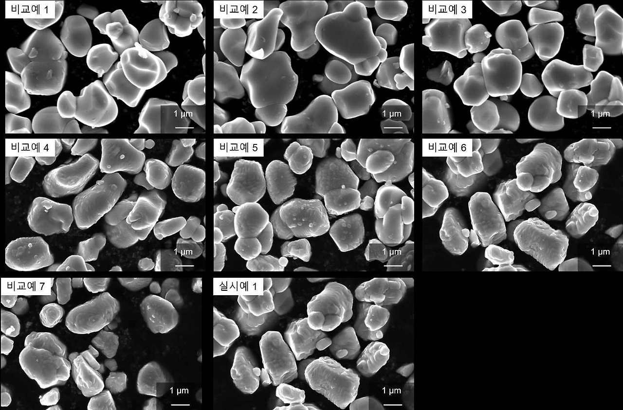 본 발명의 일 구현예에 따른 실시예 1 및 비교예 1 내지 7에서 얻은 양극활물질의 SEM 사진