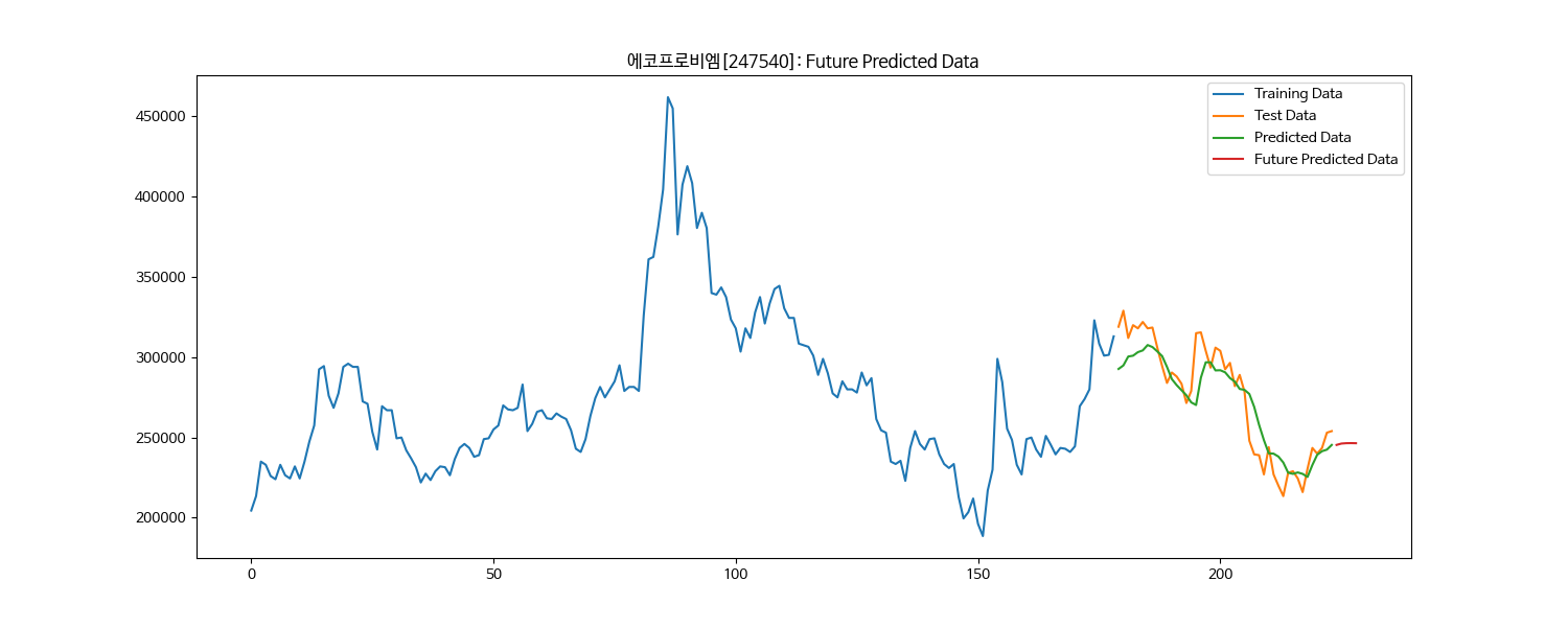 분석 결과는 단순히 숫자에 불과하지 않습니다. 이는 향후 시장 동향과 투자자들이 주목해야 할 포인트를 제시합니다. 훈련 데이터와 테스트 데이터를 통한 모델의 성능 검증은 물론, 앞으로 5일 간의 예측 데이터를 통해 더 나아가 미래 시장을 예측하고자 합니다.