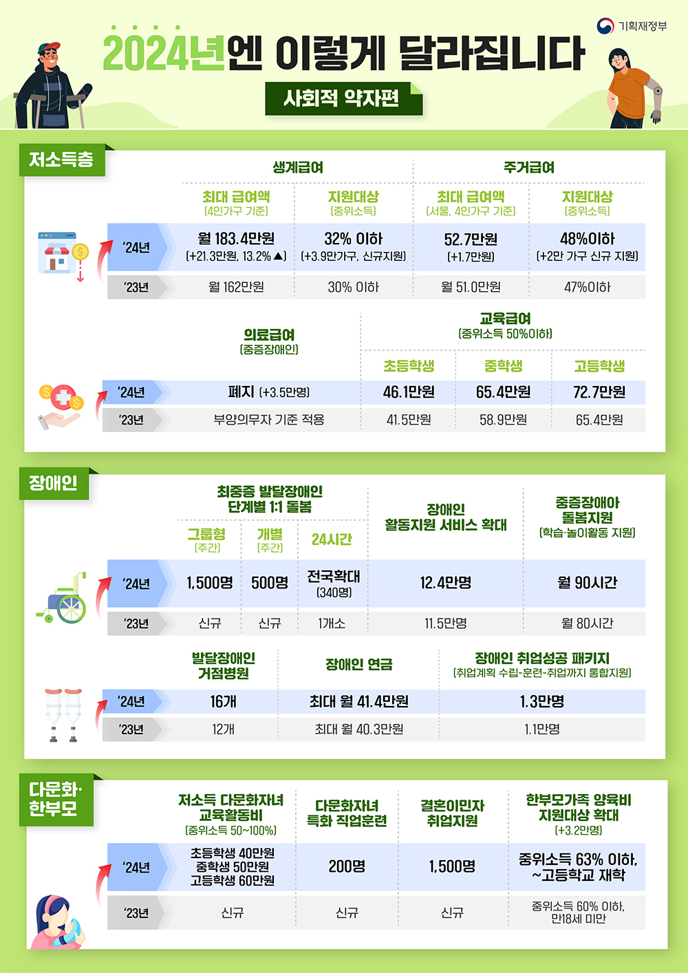 저소득층을 위한 국민기초생활보장제도 확대 (시행일: 2024년 1월 1일)