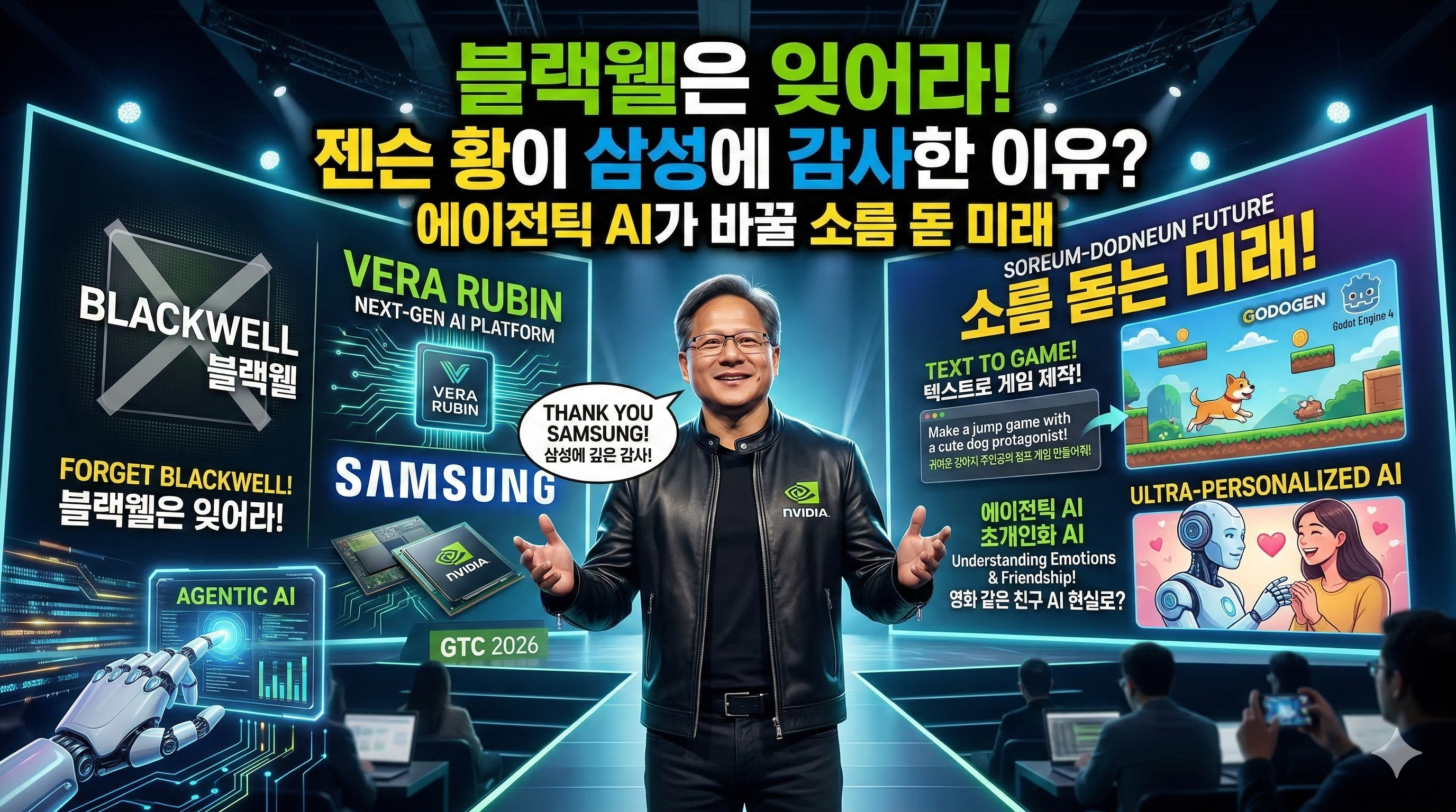 "블랙웰은 잊어라!" 젠슨 황이 삼성에 감사한 이유? 에이전틱 AI가 바꿀 소름 돋는 미래 🤯