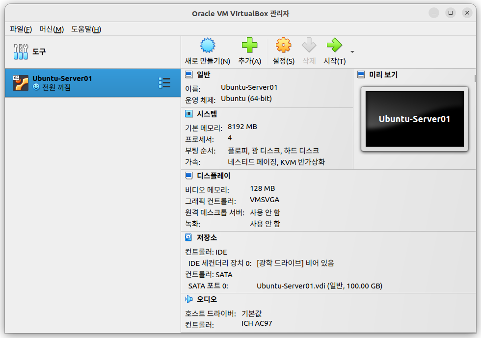 VirtualBox를 다시 실행해보면 에러없이 실행되는 것을 확인할 수 있습니다.