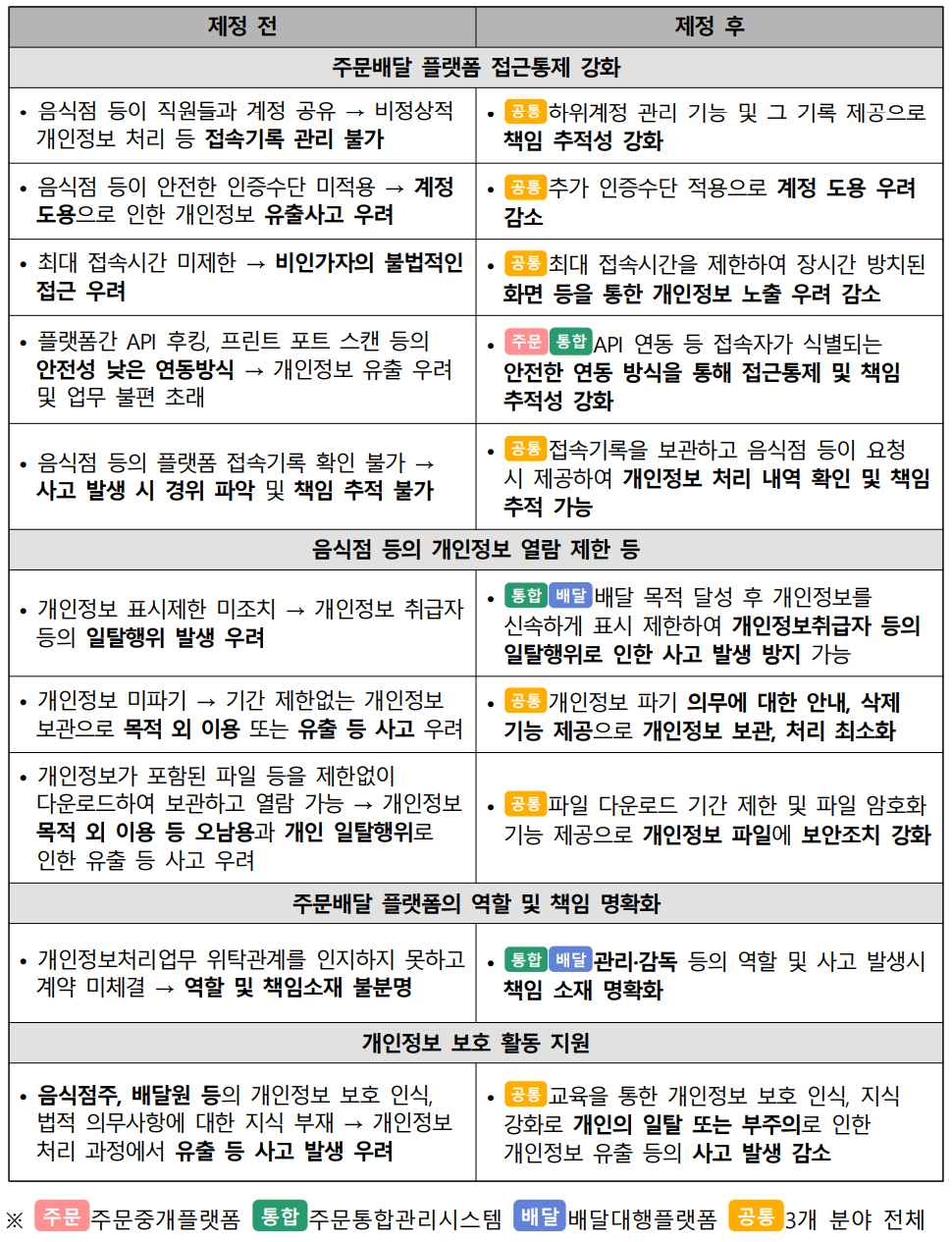 주문배달 플랫폼 분야 민관협력 자율규제 규약 전·후 비교